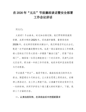 在2026年“元旦”節(jié)前廉政談話暨安全部署工作會議講話