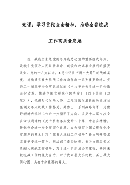 黨課:學習貫徹全會精神,推動全省統(tǒng)戰(zhàn)工作高質(zhì)量發(fā)展