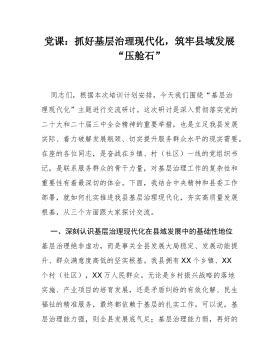 黨課:以自我革命精神將作風(fēng)建設(shè)持續(xù)引向深入,為全市經(jīng)濟(jì)社會高質(zhì)量發(fā)展提供堅強(qiáng)作風(fēng)保障同志們:今天,我們以專題黨課的形式,聚焦“作風(fēng)建設(shè)”這一永恒課題,既是深入學(xué)習(xí)貫徹習(xí)近平總書記關(guān)于全面從嚴(yán)治黨重要論述的具體行動,也是落實省委、市委“作風(fēng)建設(shè)提升年”部署要求的關(guān)鍵舉措。習(xí)近平總書記強(qiáng)調(diào):“黨的作風(fēng)是黨的形象,是觀察黨群干群關(guān)系、人心向背的晴雨表?!苯陙?,區(qū)委堅持以自我革命精神推進(jìn)作風(fēng)建設(shè),全區(qū)黨員干部干事創(chuàng)業(yè)的精氣神顯著提振,服務(wù)群眾、推動發(fā)展的能力持續(xù)提升。但也要清醒看到,作風(fēng)問題具有頑固性、反復(fù)性,稍有松懈就可能反彈回潮。今天,我結(jié)合學(xué)習(xí)思考和工作實際,圍繞“以自我革命精神將作風(fēng)建設(shè)持續(xù)...