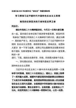 東港石油2023年紀(jì)委書(shū)記“講紀(jì)法”專(zhuān)題黨課材料學(xué)習(xí)貫徹習(xí)近平新時(shí)代中國(guó)特色社會(huì)主義思想做黨的紀(jì)律堅(jiān)決執(zhí)行者和堅(jiān)定捍衛(wèi)者同志們:繼去年黨的二十大精神宣講后,今天又一次將大家召集在一起,面向我們?nèi)w紀(jì)檢干部講授專(zhuān)題黨課。前段時(shí)間我參加了集團(tuán)公司黨的二十大精神學(xué)習(xí)研討班,通過(guò)為期一周的脫產(chǎn)學(xué)習(xí),再次比較系統(tǒng)的學(xué)習(xí)了習(xí)近平新時(shí)代中國(guó)特色社會(huì)主義思想,感到很受教育、很有啟發(fā),也想和大家分享一下學(xué)習(xí)成果。按照公司主題教育活動(dòng)要求和紀(jì)檢干部隊(duì)伍教育整頓工作安排,也要求給大家講一堂黨課,剛好一并進(jìn)行。下面,就結(jié)合自身所學(xué)、所感、所獲跟大家做個(gè)交流。一、深化理論武裝,持續(xù)學(xué)懂弄通做實(shí)習(xí)近平新時(shí)代中國(guó)特色社會(huì)主...