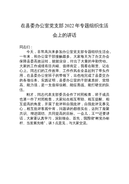 在市委辦公室機(jī)關(guān)黨支部組織生活會(huì)上的講話發(fā)言