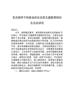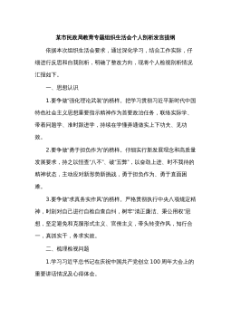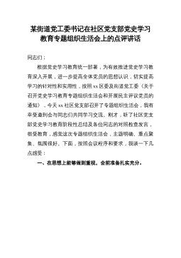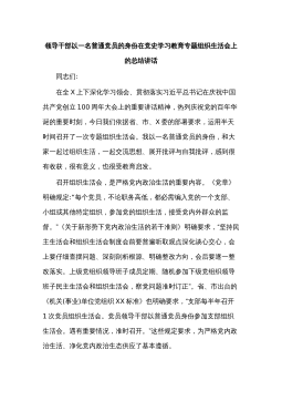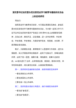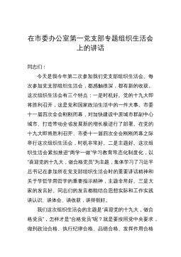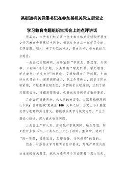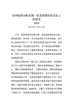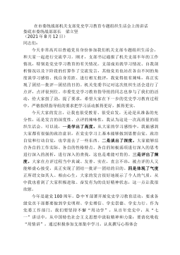 在市委統(tǒng)戰(zhàn)部機(jī)關(guān)支部黨史學(xué)習(xí)教育專題組織生活會(huì)上的講話婁底市委統(tǒng)戰(zhàn)部部長(zhǎng)梁立堅(jiān)(2021年8月12日)同志們:今天非常高興以普通黨員身份參加我們機(jī)關(guān)支部專題組織生活會(huì),和大家一起進(jìn)行交流學(xué)習(xí)。剛才,支部書記通報(bào)了機(jī)關(guān)支部半年的工作情況,特別是黨史學(xué)習(xí)教育的有關(guān)情況。支部成員就學(xué)習(xí)情況、自我剖析情況以及下階段的打算作了交流發(fā)言,其他黨員也站在各自不同的角度談學(xué)習(xí)感悟、找自身差距、進(jìn)行相互批評(píng),我覺得很有辣味,真正實(shí)現(xiàn)了團(tuán)結(jié)—批評(píng)—團(tuán)結(jié)的目的。機(jī)關(guān)黨委書記對(duì)這次組織生活會(huì)進(jìn)行了點(diǎn)評(píng),點(diǎn)評(píng)很到位。市委黨史學(xué)習(xí)教育指導(dǎo)組的同志也參與了我們的活動(dòng),給大家鼓了勁,提了要求,希望大家在下一步的黨史學(xué)習(xí)教育過...