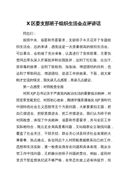 X縣委常委在分管領(lǐng)域組織生活會(huì)上的講話