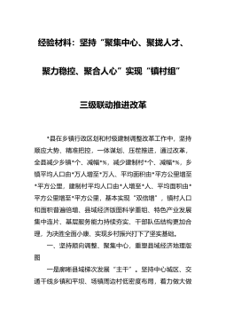 經(jīng)驗(yàn)材料:堅(jiān)持“聚集中心、聚攏人才、聚力穩(wěn)控、聚合人心”實(shí)現(xiàn)“鎮(zhèn)村組”三級(jí)聯(lián)動(dòng)推進(jìn)改革