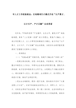市人才工作經(jīng)驗做法:打造精準引才模式開創(chuàng)“以產(chǎn)聚才、以才興產(chǎn)、產(chǎn)才互融”生動局面