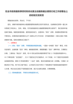 在全市政務(wù)服務(wù)事項對標優(yōu)化暨主動服務(wù)暖企便民行動工作部署會上的經(jīng)驗交流發(fā)言