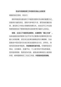 在全市政務(wù)服務(wù)事項對標優(yōu)化暨主動服務(wù)暖企便民行動工作部署會上的經(jīng)驗交流發(fā)言尊敬的各位領(lǐng)導、同志們,下午好:首先,感謝市政務(wù)服務(wù)和大數(shù)據(jù)管理局給我局交流學習的機會,也感謝各位領(lǐng)導一直以來對我局工作的關(guān)心、支持、幫助。在市政務(wù)服務(wù)和大數(shù)據(jù)管理局的有力指導下,我們堅持環(huán)境創(chuàng)新打基礎(chǔ),制度創(chuàng)新提效能,服務(wù)創(chuàng)新添活力,全面深化“四辦”改革,持續(xù)推動營商環(huán)境不斷優(yōu)化。改革經(jīng)驗在國務(wù)院辦公廳《政務(wù)公開工作交流》《中國改革報》《湖北日報》等各類媒體刊載?,F(xiàn)將主要做法匯報如下:一、主要做法(一)深化“四辦”改革,不斷提高政務(wù)服務(wù)效能。一是進一步梳理“四辦”事項。對標先進城市,全面梳理“四辦”事項,編制直觀簡明、...