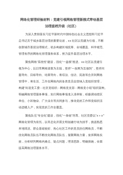網(wǎng)絡(luò)化管理經(jīng)驗(yàn)材料:黨建引領(lǐng)網(wǎng)格管理新模式帶動(dòng)基層治理提檔升級(jí)(社區(qū))