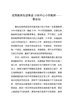 優(yōu)秀教師的先進事跡——常文棟常文棟,男,中學一級教師,現(xiàn)任九年級物理教學工作。在教學工作中,始終堅持認真?zhèn)浜妹恳还?jié)課,力求上好每一節(jié)課,積極參與教研課改活動,不斷提高自己的教育教學水平,探索實踐新的教學方法,開拓創(chuàng)新,與時俱進,教育教學成績優(yōu)異。201X被評為縣級優(yōu)秀教師。一、認真教學,潛心教研。作為一名教師,我不斷地刻苦鉆研業(yè)務(wù),認真研究教材教法,研究新課程標準,注重多方位培養(yǎng)學生的能力和學習習慣,對工作講求實效,對學生因材施教。教研活動是載體,課改教研是先導。為此,我在所從事的教研工作中積極探索,勤于實踐,做好新課改的模范帶頭人。在這方面,我積極觀看各種教學觀摩課和報告會不斷充實自己,借鑒...