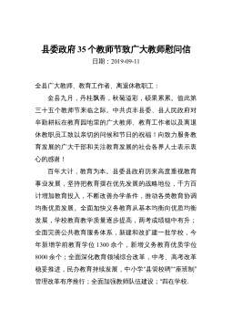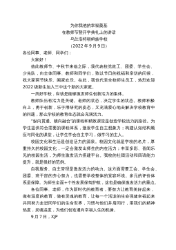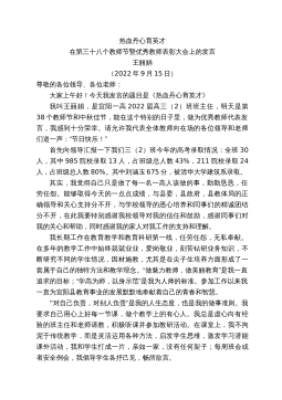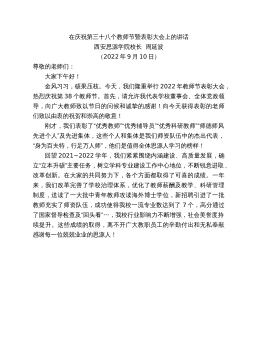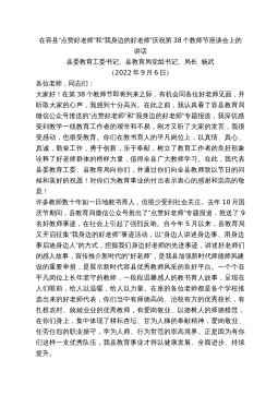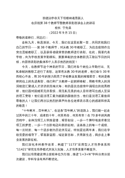 在容縣“點(diǎn)贊好老師”和“我身邊的好老師”慶祝第38個(gè)教師節(jié)座談會(huì)上的講話縣委教育工委書記、縣教育局黨組書記、局長(zhǎng)楊武(2022年9月6日)各位老師,同志們:大家好!在第38個(gè)教師節(jié)即將到來(lái)之際,有機(jī)會(huì)同各位好老師見面,并聽取大家的心聲,我感到十分高興。在此之前,我認(rèn)真看了容縣教育局微信公眾號(hào)推送的“點(diǎn)贊好老師”和“我身邊的好老師”專題報(bào)道,我深切感受到教學(xué)一線教育工作者的艱辛和不易,剛才又聽了大家的發(fā)言,我很受感動(dòng),也很受教育。你們?cè)诮虝说钠椒矋徫簧?,以真情、真心、真誠(chéng),勤奮工作,勇于創(chuàng)新,樂于奉獻(xiàn),樹立了教育工作者的良好形象詮釋了好老師群體的榜樣力量,值得全縣廣大教師學(xué)習(xí)。在此,我代表縣...
