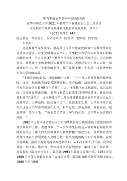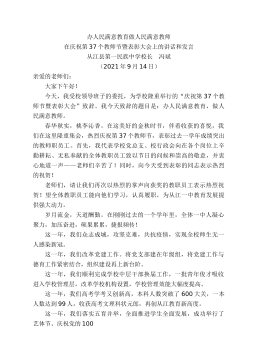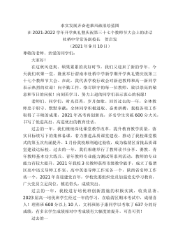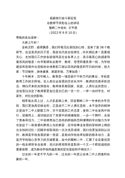 在2021—2022學(xué)年度開(kāi)學(xué)典禮暨新中國(guó)第37個(gè)教師節(jié)表彰大會(huì)上的講話官莊中學(xué)校長(zhǎng)劉志遠(yuǎn)(2021年9月10日)老師們、同學(xué)們:大家下午好!今天,我們?cè)谶@里隆重集會(huì),慶祝新中國(guó)第37個(gè)教師節(jié)暨新學(xué)年開(kāi)學(xué)典禮。首先,我代表學(xué)校黨支部和校委會(huì)向默默耕耘、辛勤工作的教職員工致以節(jié)日的祝賀和最誠(chéng)摯的感謝!感謝大家在過(guò)去的日子里對(duì)學(xué)校的發(fā)展所付出的辛苦和做出的貢獻(xiàn)!老師們,你們辛苦了!在這里,我還要對(duì)剛步入官莊中學(xué)的七年級(jí)新同學(xué)表示熱烈的歡迎你們的到來(lái),為學(xué)校增添了新的血液、新的活力、新的氣象!同時(shí),也通過(guò)全體師生向一直以來(lái)理解、支持我們教育工作的教師家屬、學(xué)生家長(zhǎng)道一聲感謝,正是因?yàn)橛辛四銈?,才讓?..