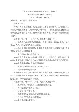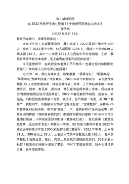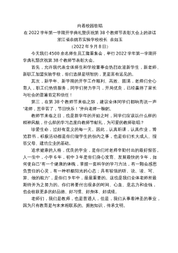 浙江省余姚市實驗學校校長余如玉:在2022學年第一學期開學典禮暨慶祝第38個教師節(jié)表彰大會上的講話