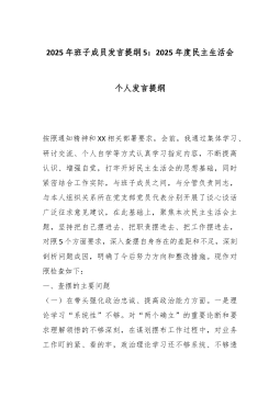 XX市人大常委會黨組2025年度民主生活會個人對照檢查材料(五個帶頭)根據(jù)市委關于召開2025年度民主生活會的統(tǒng)一部署,本人緊扣“深入學習貫徹習近平新時代中國特色社會主義思想,全面貫徹落實黨的二十屆三中、四中全會精神,深入貫徹落實習近平總書記重要講話和重要指示批示精神,以打攻堅戰(zhàn)、持久戰(zhàn)的決心和恒心,鍥而不舍落實中央八項規(guī)定精神,推進作風建設常態(tài)化長效化,以優(yōu)良作風凝心聚力、真抓干事,聚焦高質(zhì)量發(fā)展首要任務,扎實推進中國式現(xiàn)代化,為實現(xiàn)‘十五五’良好開局奠定堅實基礎”這一主題,在深入開展理論學習、廣泛征求意見建議的基礎上,對照5個方面內(nèi)容,深入查擺自身存在的差距和不足,深刻剖析問題根源,明確了...