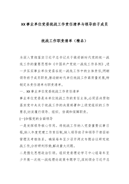 XX事業(yè)單位黨委統(tǒng)戰(zhàn)工作責任清單與領導班子成員統(tǒng)戰(zhàn)工作職責清單(精品)